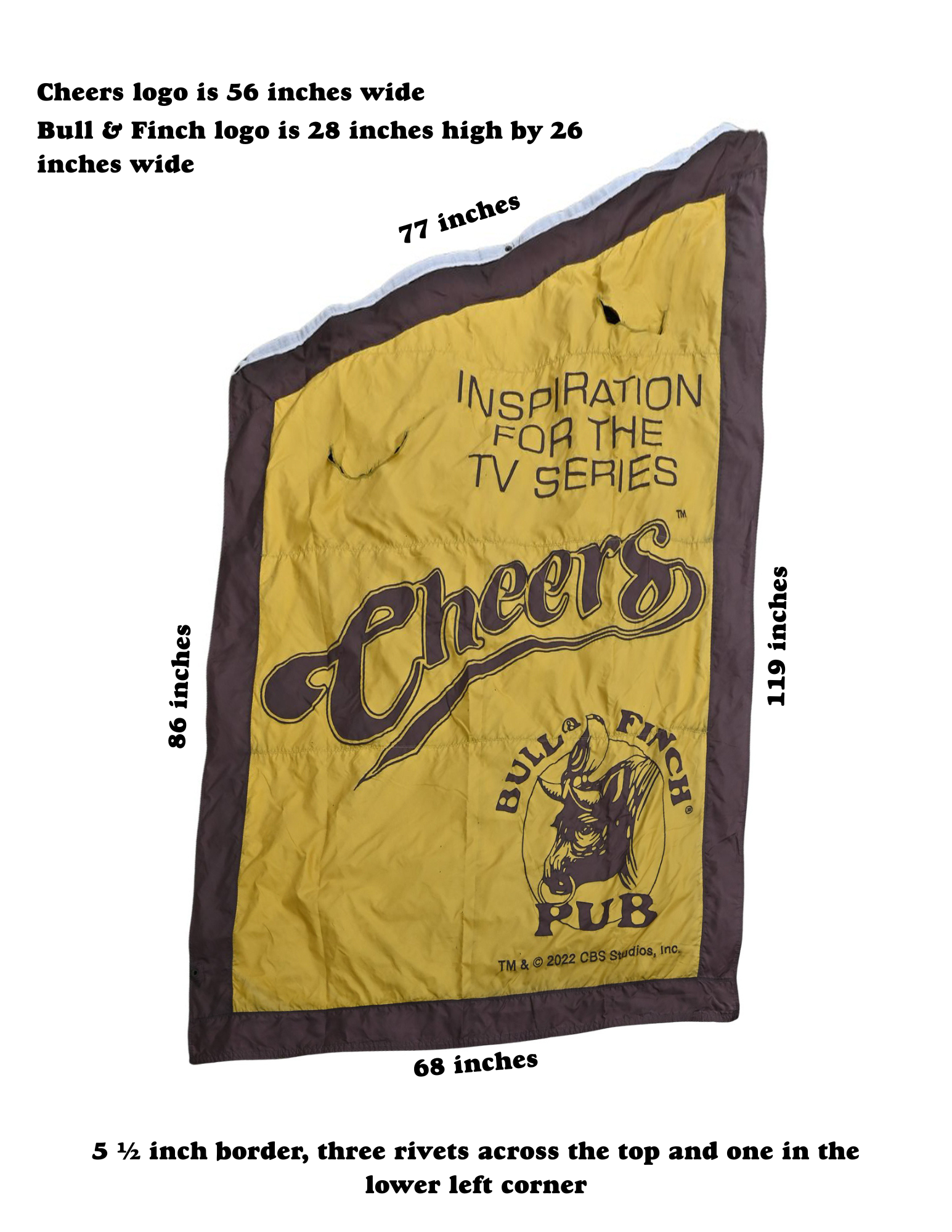 We’re auctioning off the Cheers flag that proudly flew in front of our building in the year 2022 — a cherished piece of memorabilia that holds plenty of stories and spirit. This is your chance to take home a meaningful symbol while giving back: net proceeds will benefit Cheers for Children, supporting children in need throughout our community. Starting bid is $1,500. Please comment your bid below. Bids not accompanied by an email address will be disregarded. Bidding closes on 7/27/2025 at 11:59pm eastern time. Winner will be notified by 7/29/2025 by email and be given a link to donate the bid amount by credit card. Failure to respond to notification will result in forfeit to the next highest bidder. Actual flag may differ from one shown. Flag does show natural signs of wear and tear around edges due to having been outdoors and experiencing New England weather conditions.